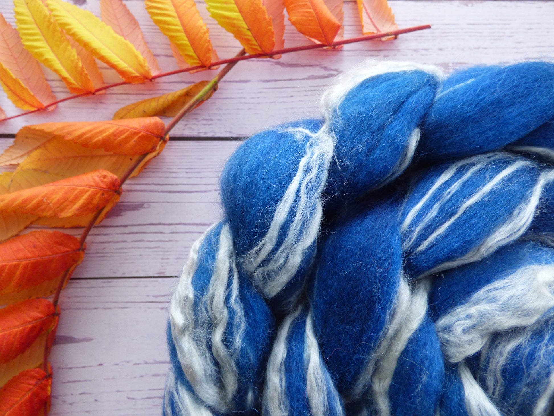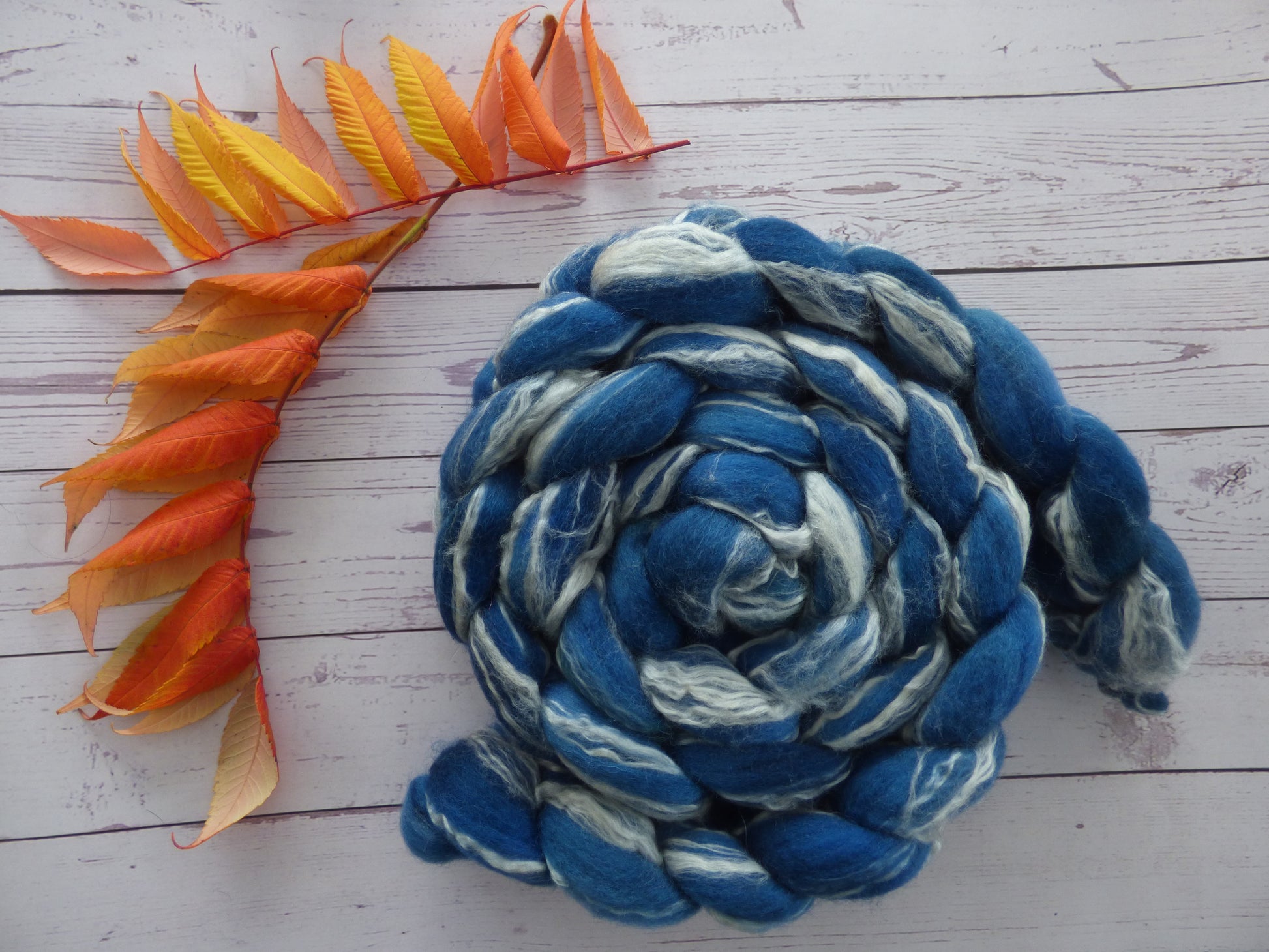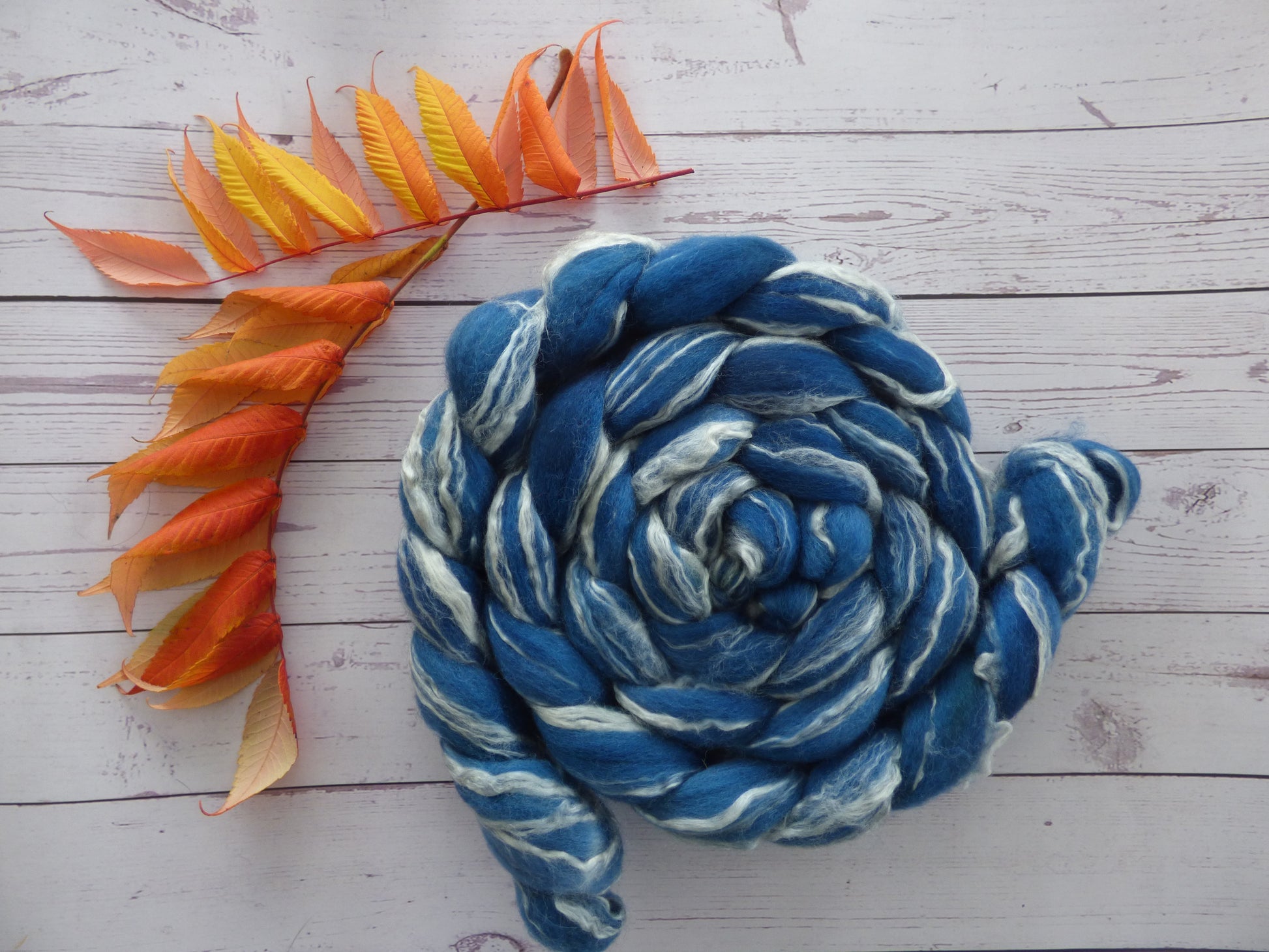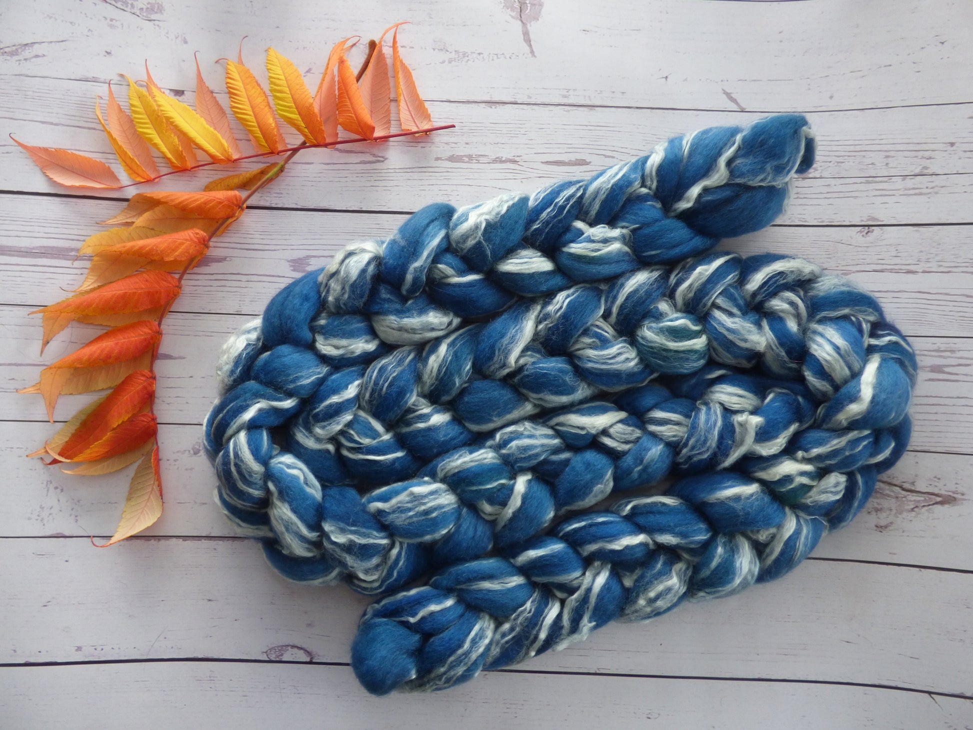 Commercially prepared BFL & SeaCell top, hand dyed by me using high quality acid dyes in a semi-solid blue colourway. Looking for an alternative to nylon for strengthening your handspun BFL sock yarns? Look no further... It's strong, it's shiny, it's not made of plastic. SeaCell is a sustainable fibre made from seaweed and wood pulp with complementary breathable qualities to wool.