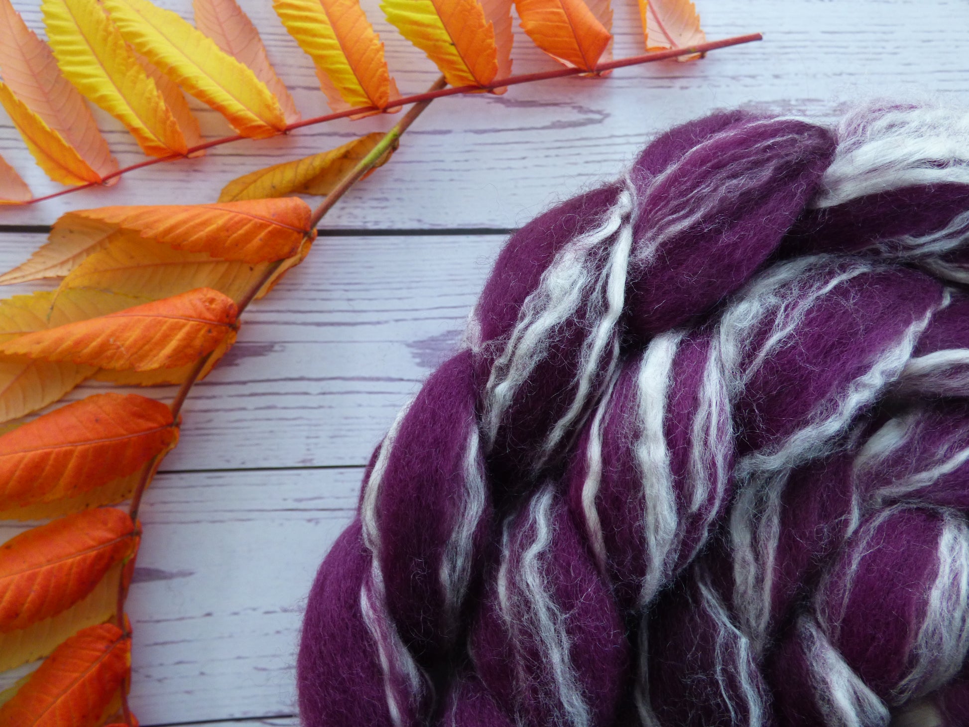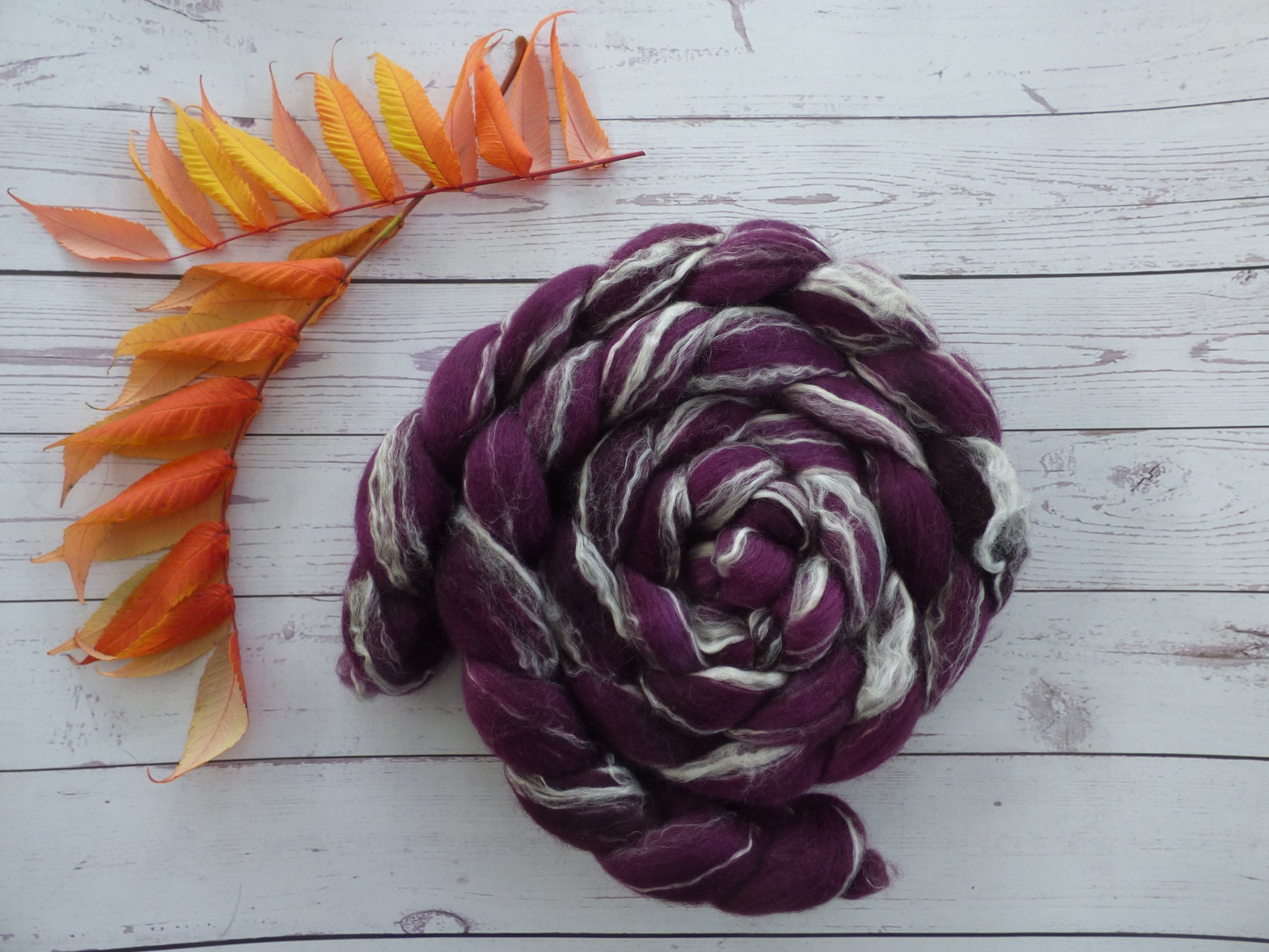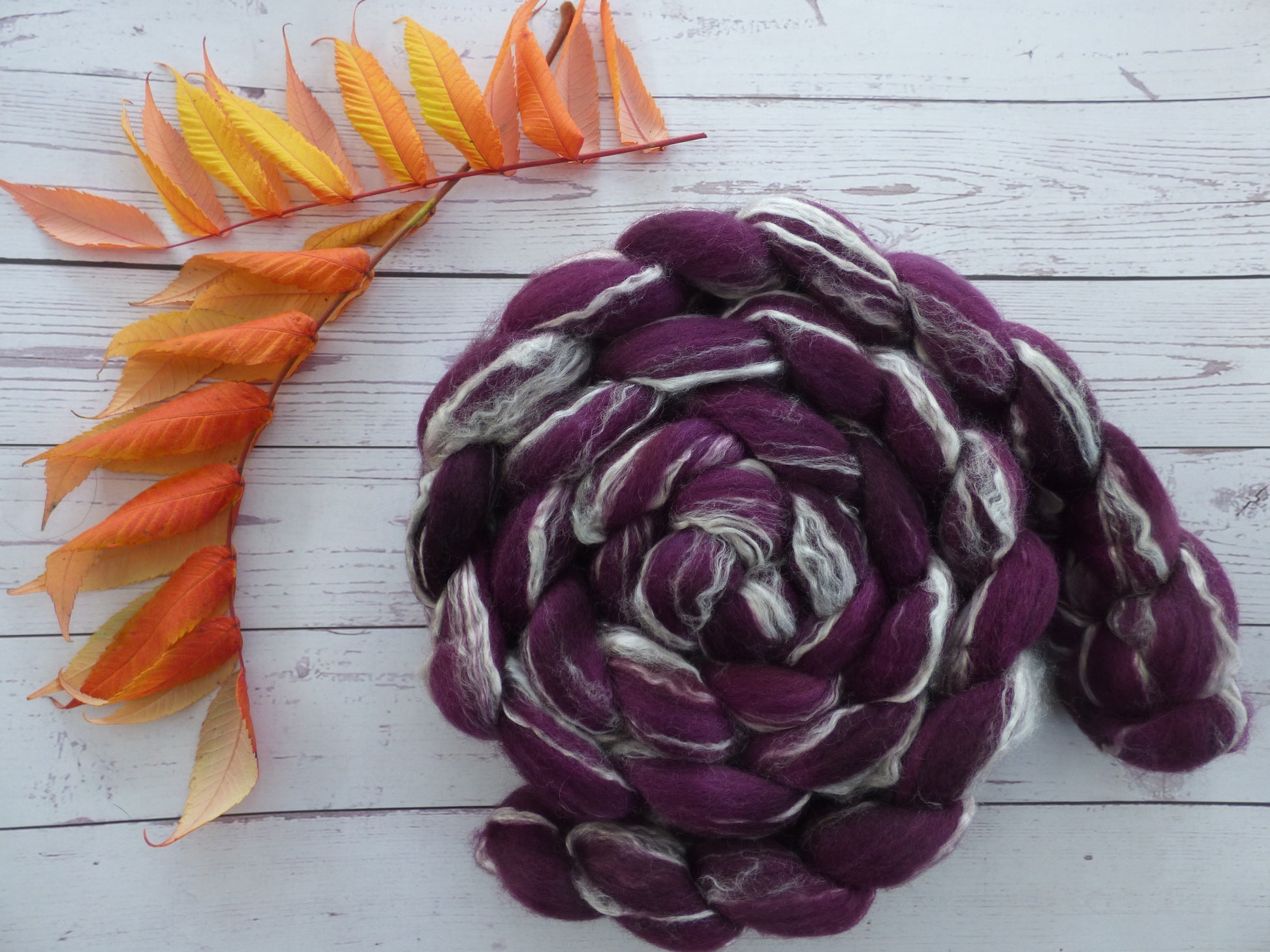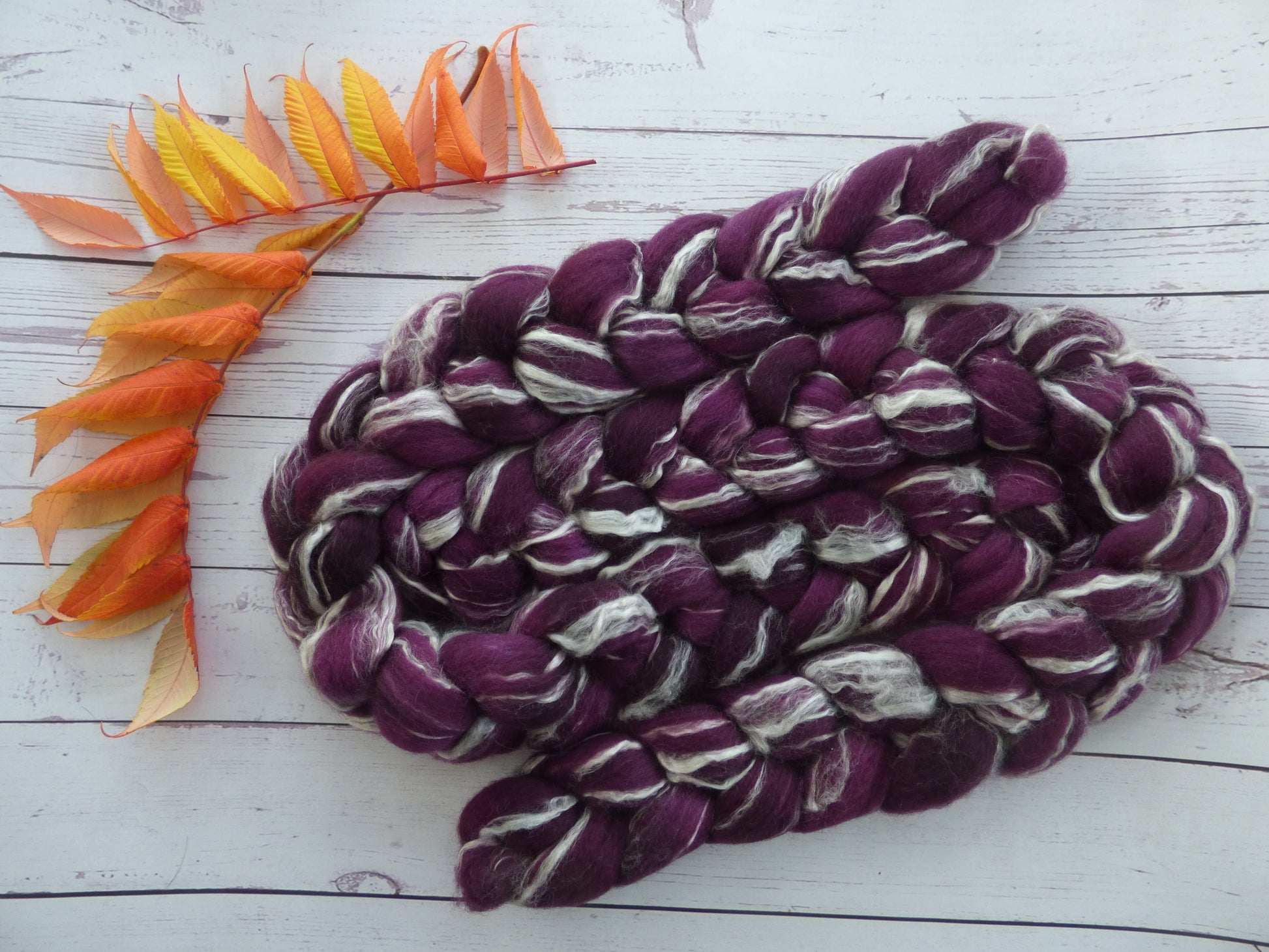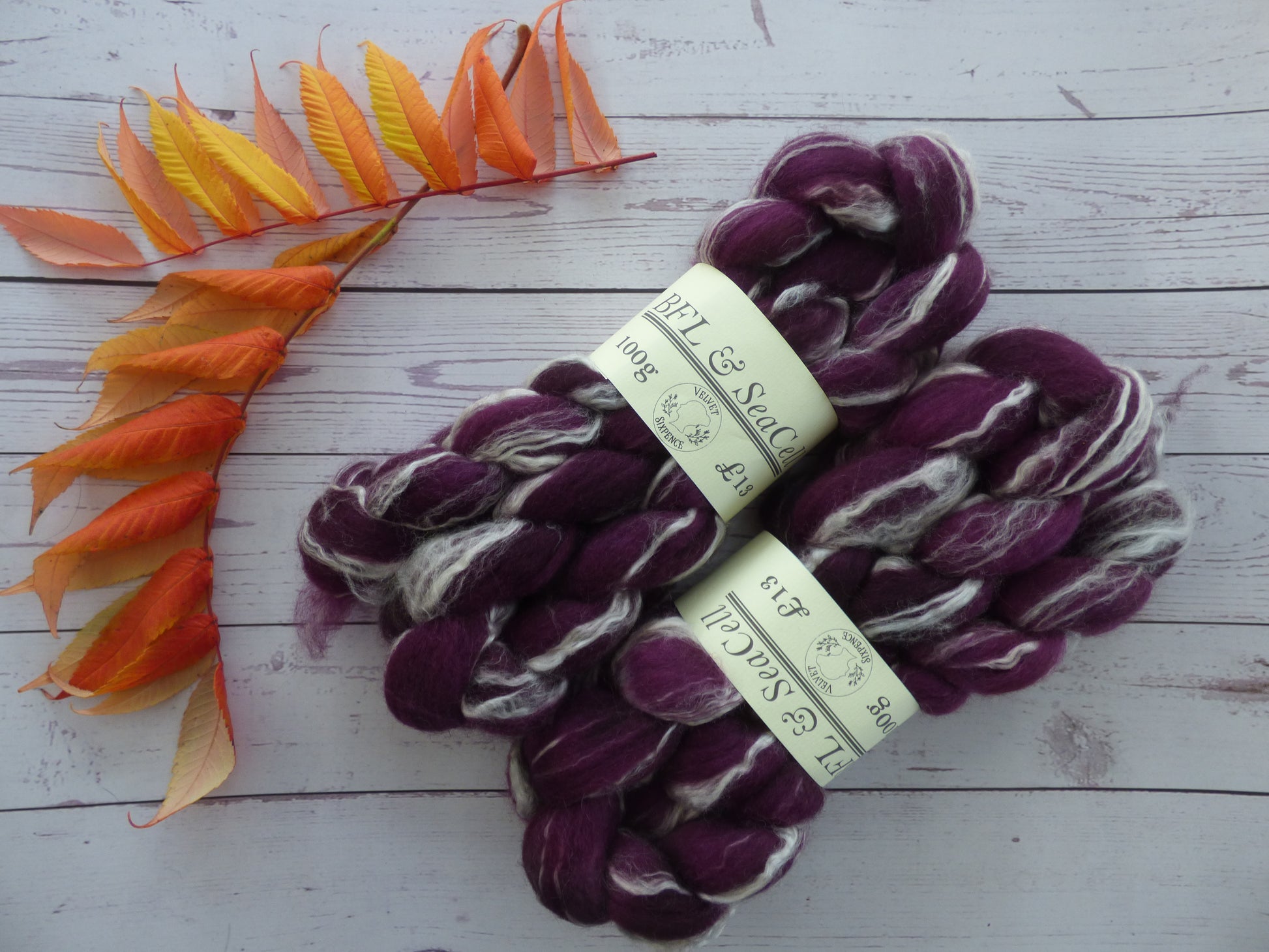 Commercially prepared BFL & SeaCell top, hand dyed by me using high quality acid dyes in a semi-solid purple colourway. Looking for an alternative to nylon for strengthening your handspun BFL sock yarns? Look no further... It's strong, it's shiny, it's not made of plastic. SeaCell is a sustainable fibre made from seaweed and wood pulp with complementary breathable qualities to wool.