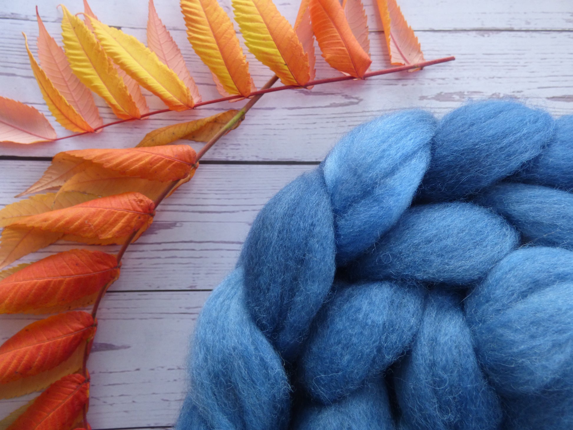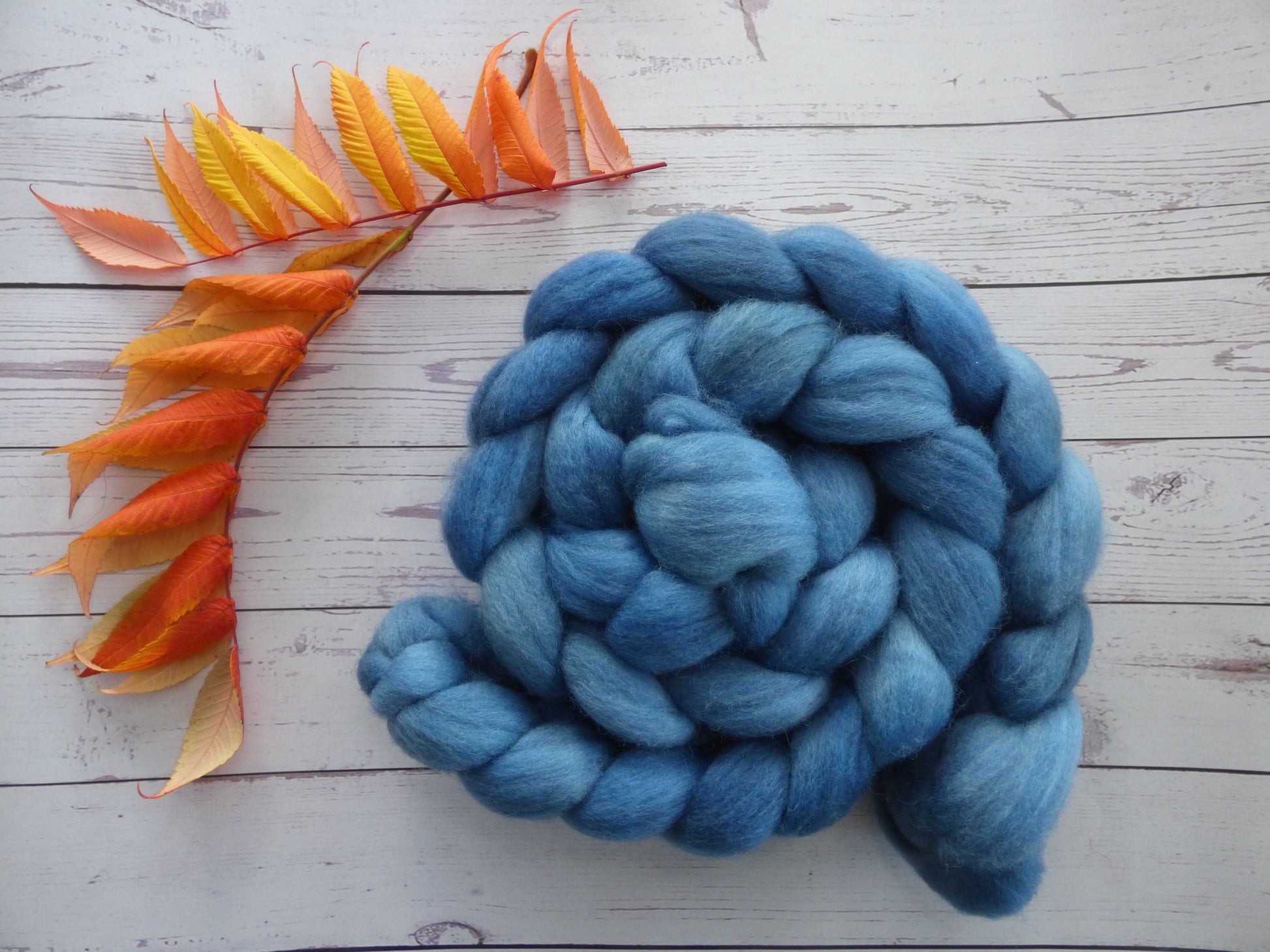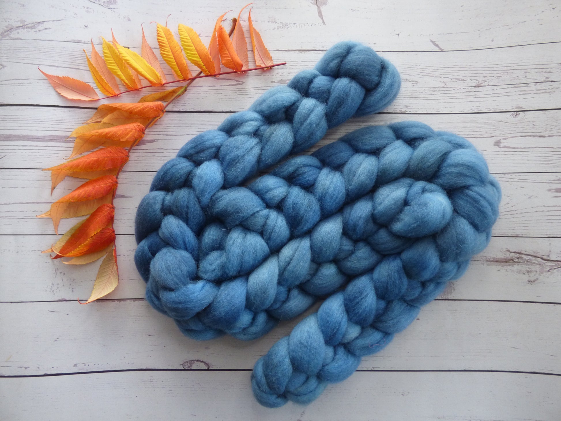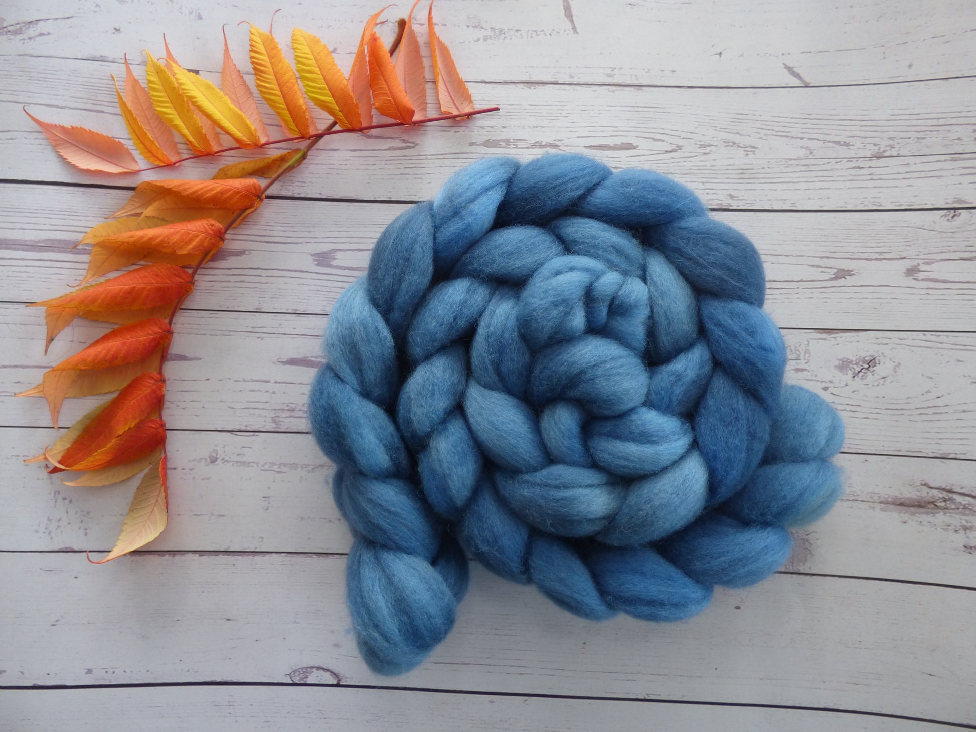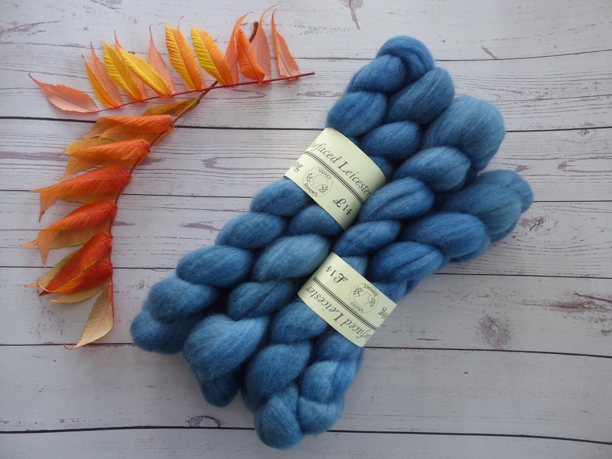 Commercially prepared Bluefaced Leicester top, hand dyed by me using high quality acid dyes in a blue colourway. Bluefaced leicester is soft, it's British, and it's also got a slightly longer staple that makes it suitable for beginners as well as more experienced spinners.