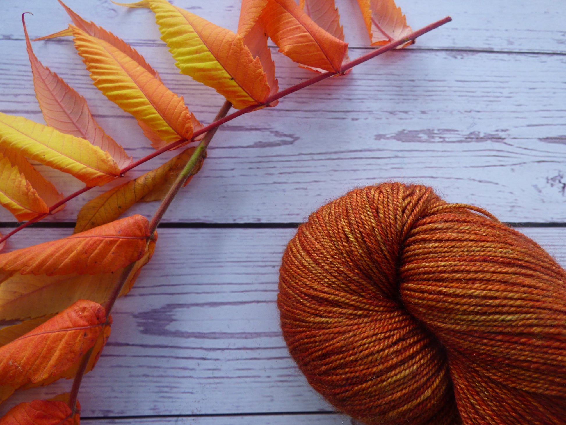 Commercially spun 4-ply superwash merino/yak/silk yarn, hand dyed by me using high quality acid dyes in an orange colourway. This is seriously luxurious yarn. Super soft, and the naturally darker yak gives great depth to the colour.