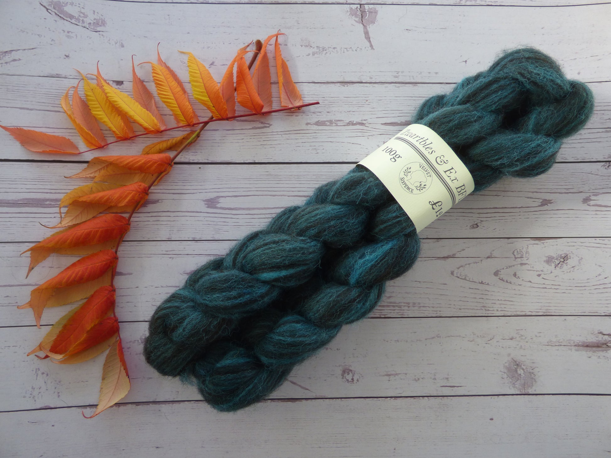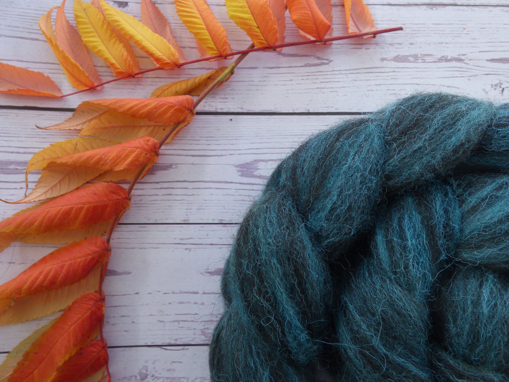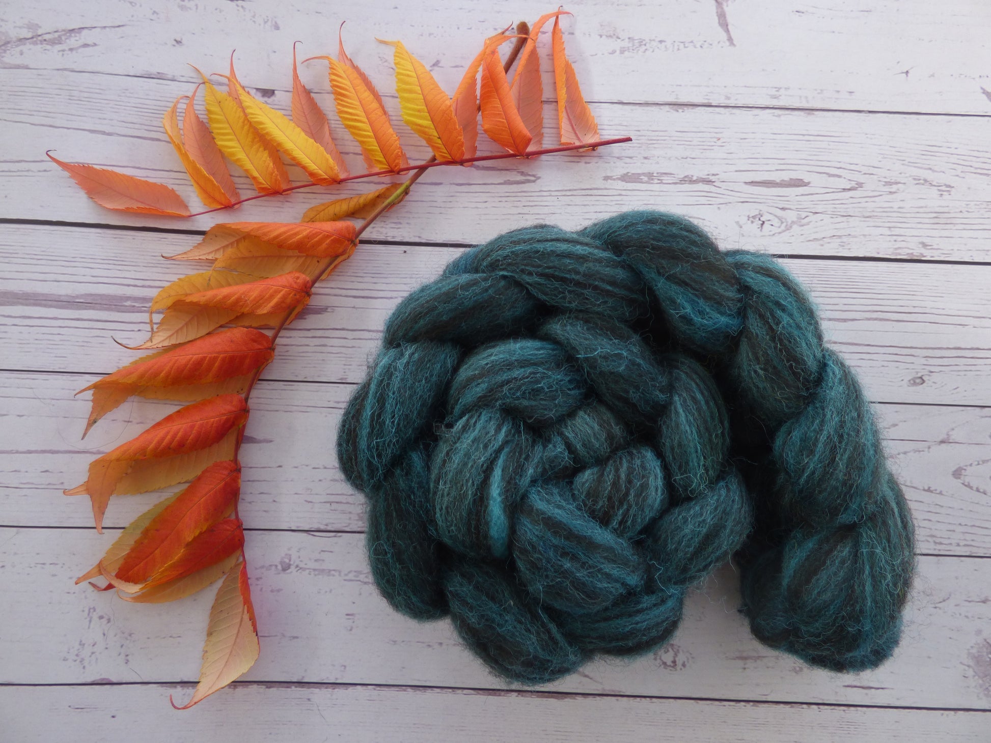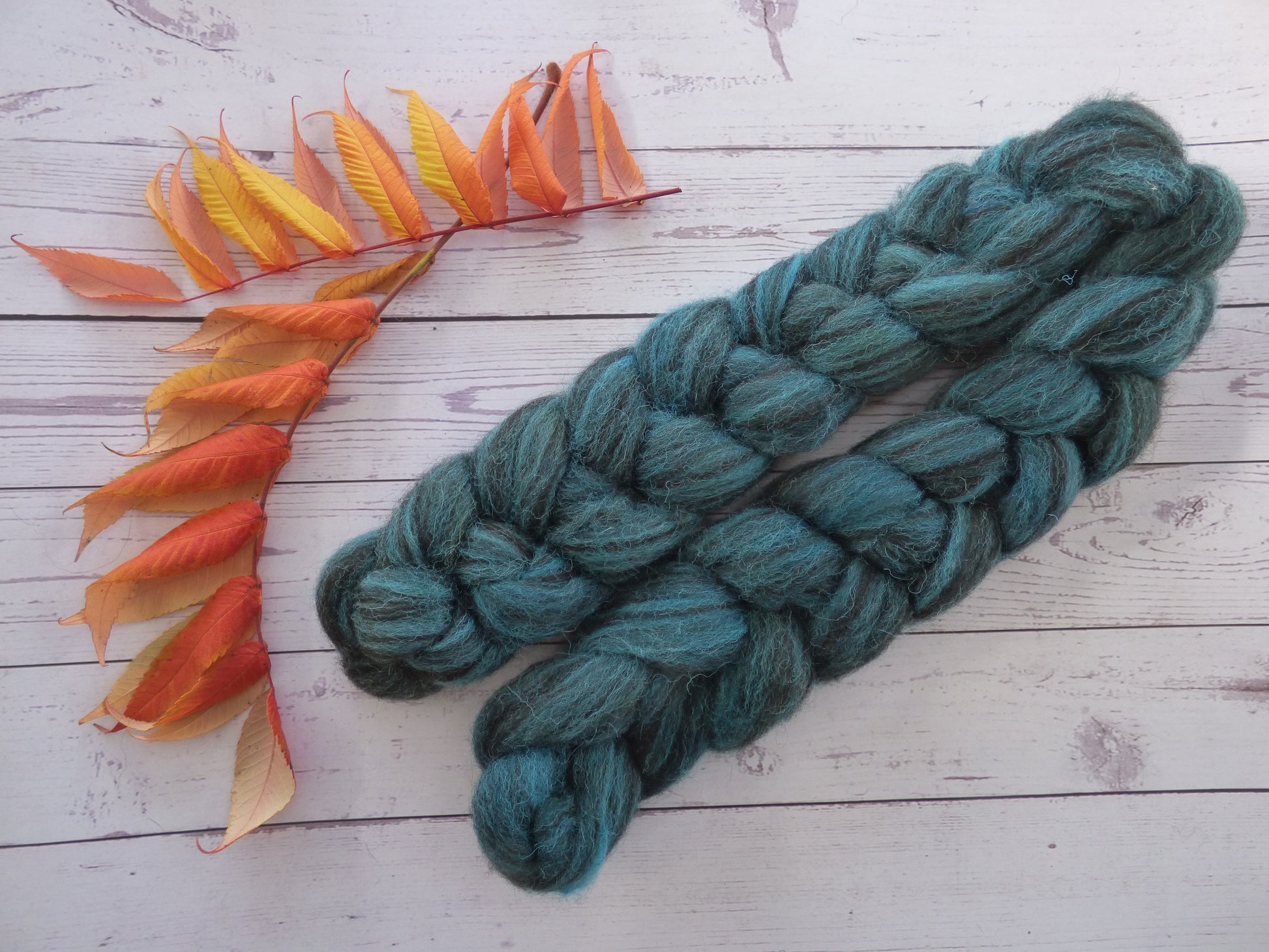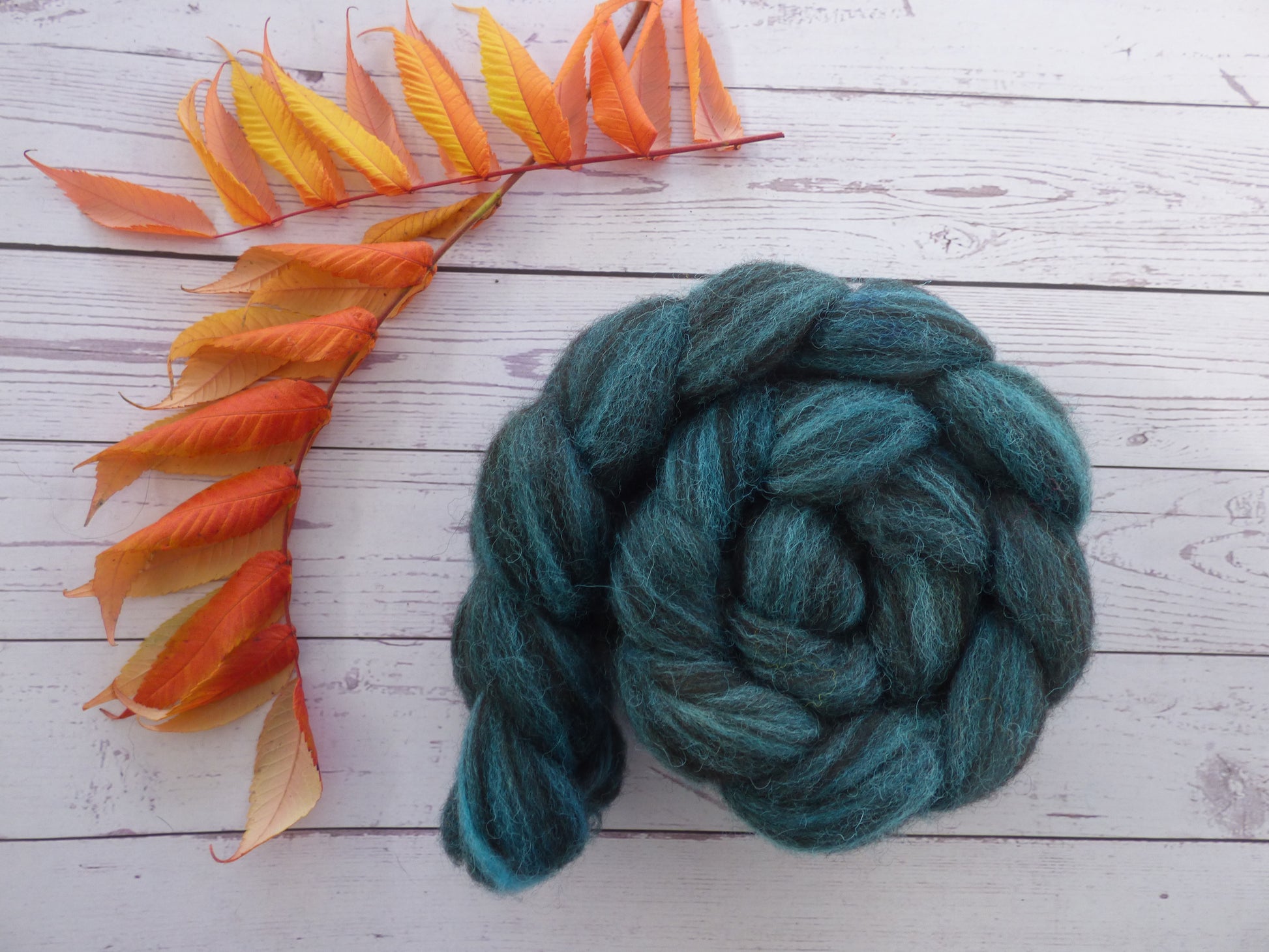 Commercially prepared Zwartbles and Exmoor Blueface top, hand dyed by me using high quality acid dyes in a semi-solid turquoise colourway.