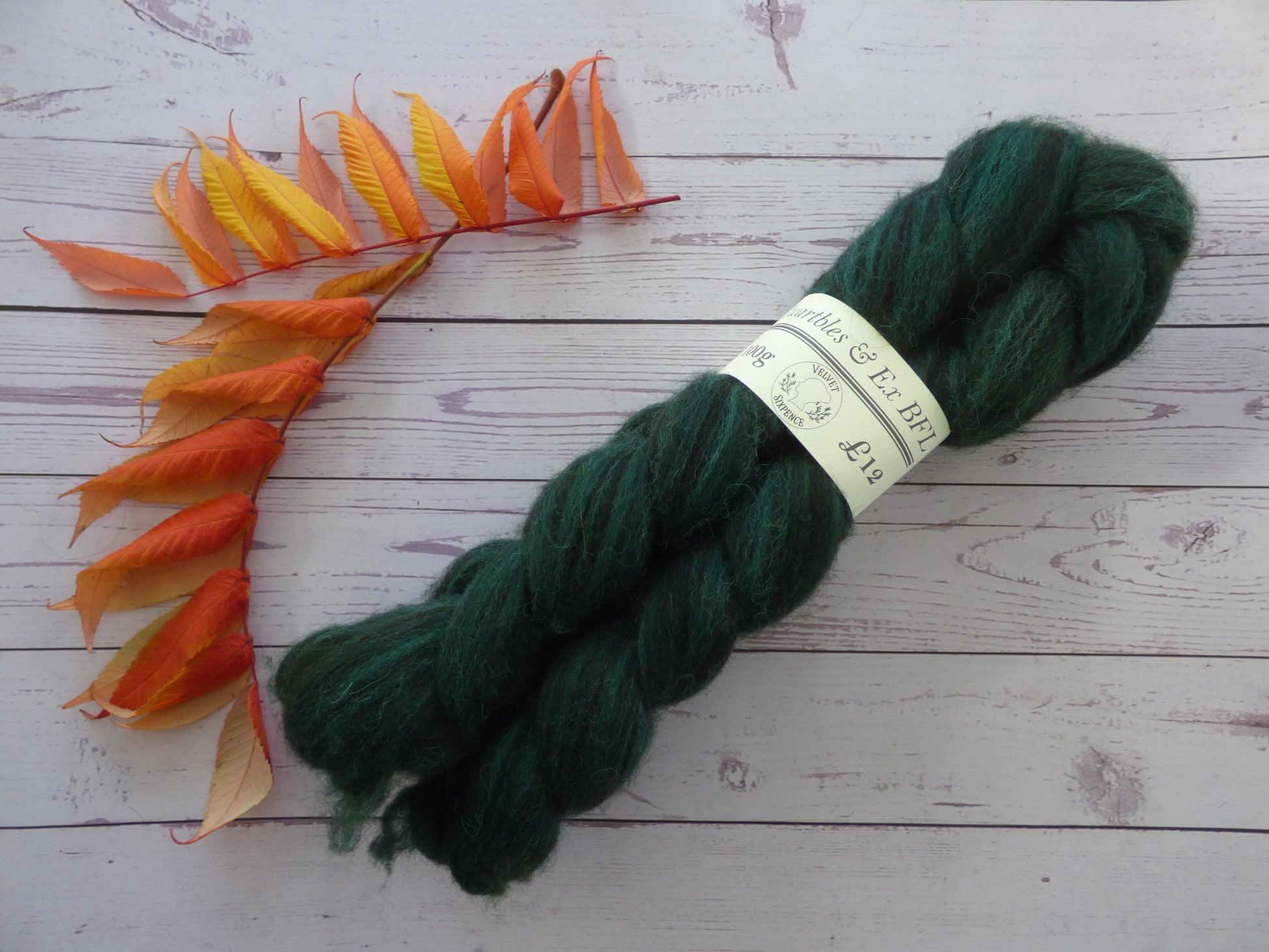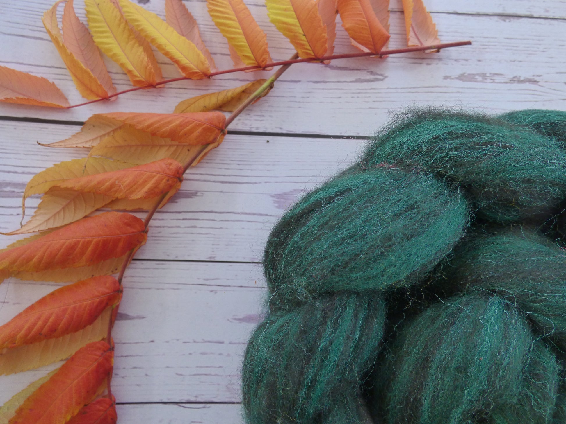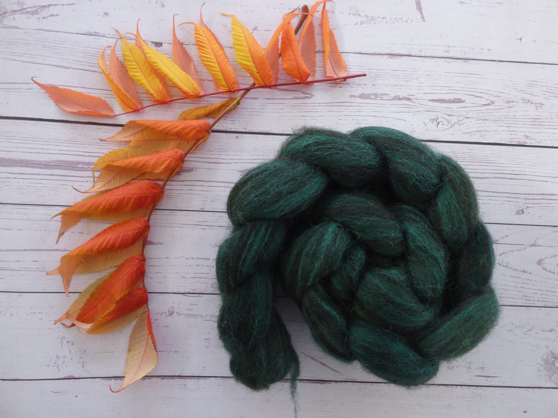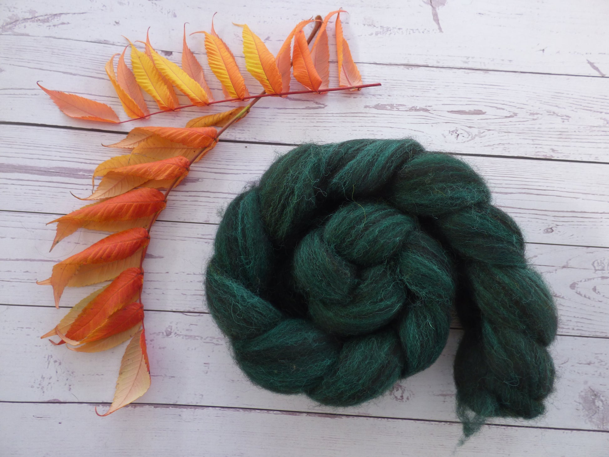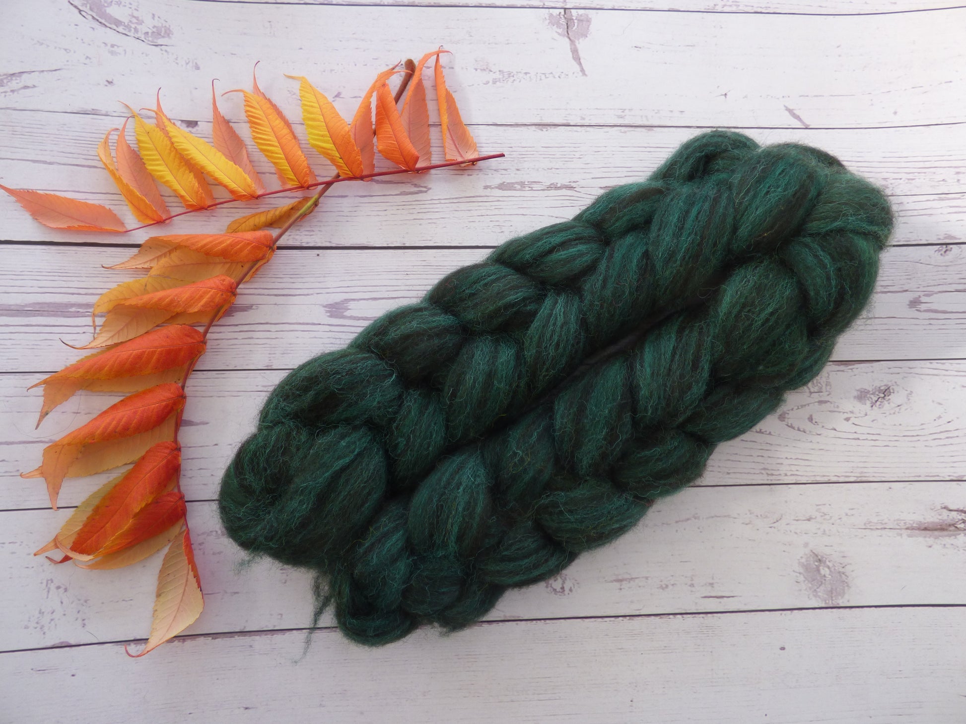 Commercially prepared Zwartbles and Exmoor Blueface top, hand dyed by me using high quality acid dyes in a semi-solid dark green colourway.